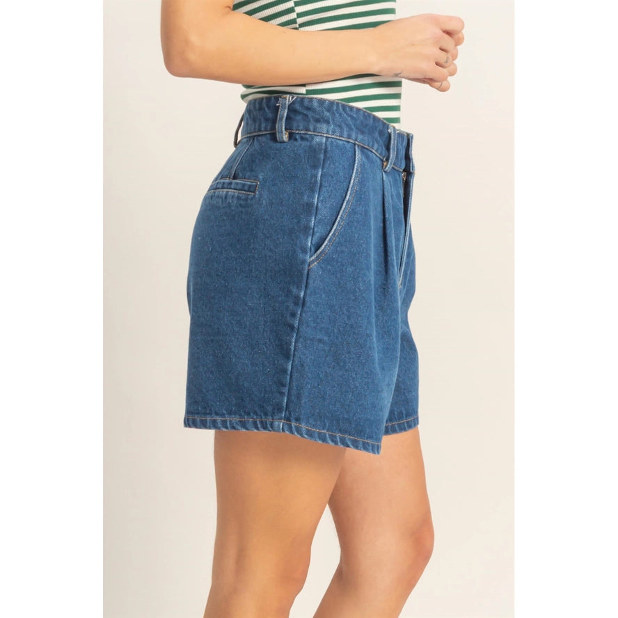 These enzyme wash denim shorts feature a high-waisted design with belt loops and a button closure. With clean, tailored lines and deep pockets, they offer both style and functionality. Pair with a tucked-in blouse and loafers for a chic daytime look. denim 75% cotton 25% polyester.