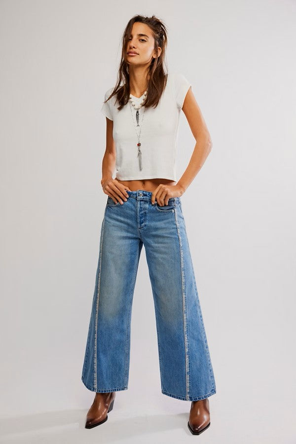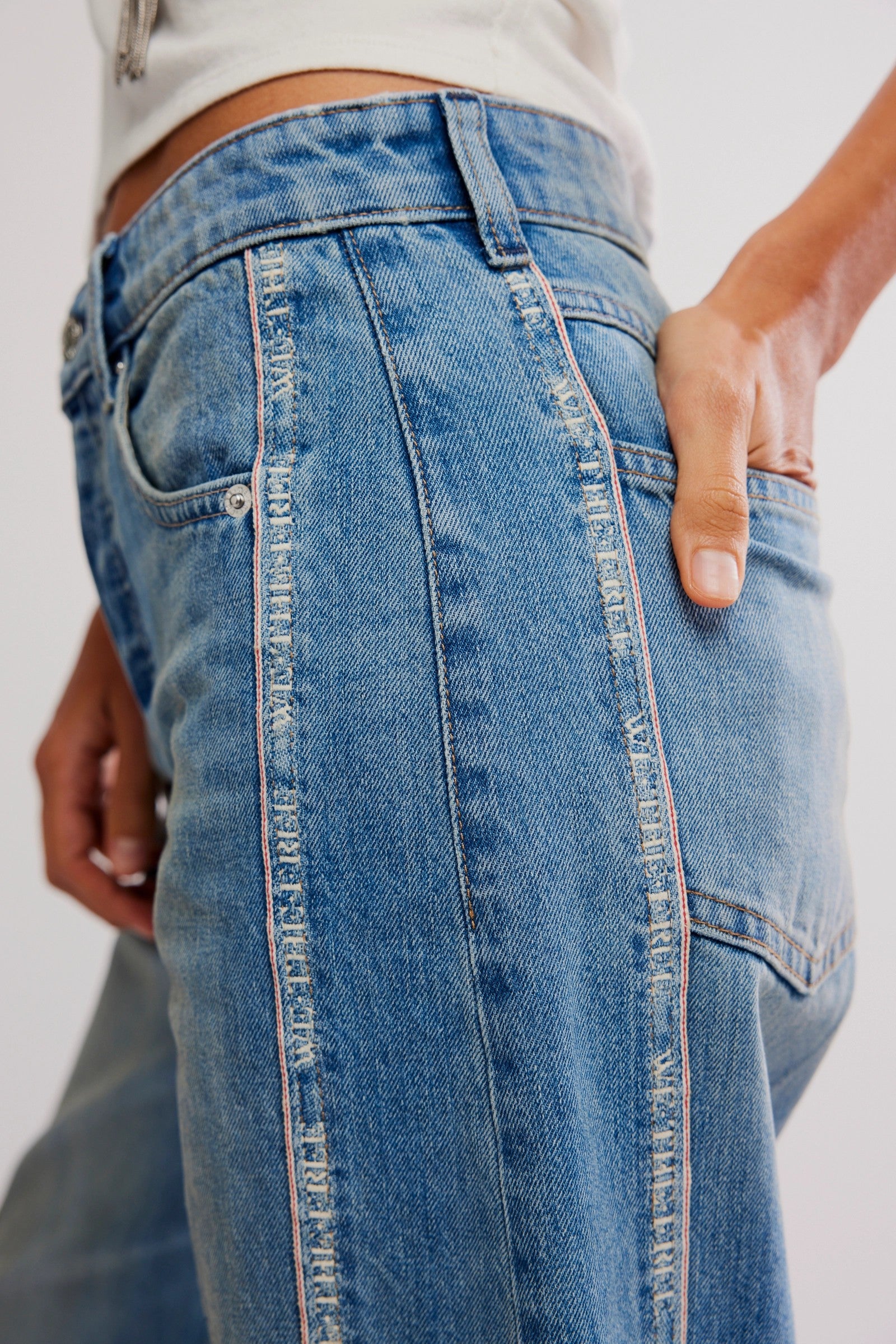 Features: We The Free tape on the side, release hem, button fly closure, five-pocket design