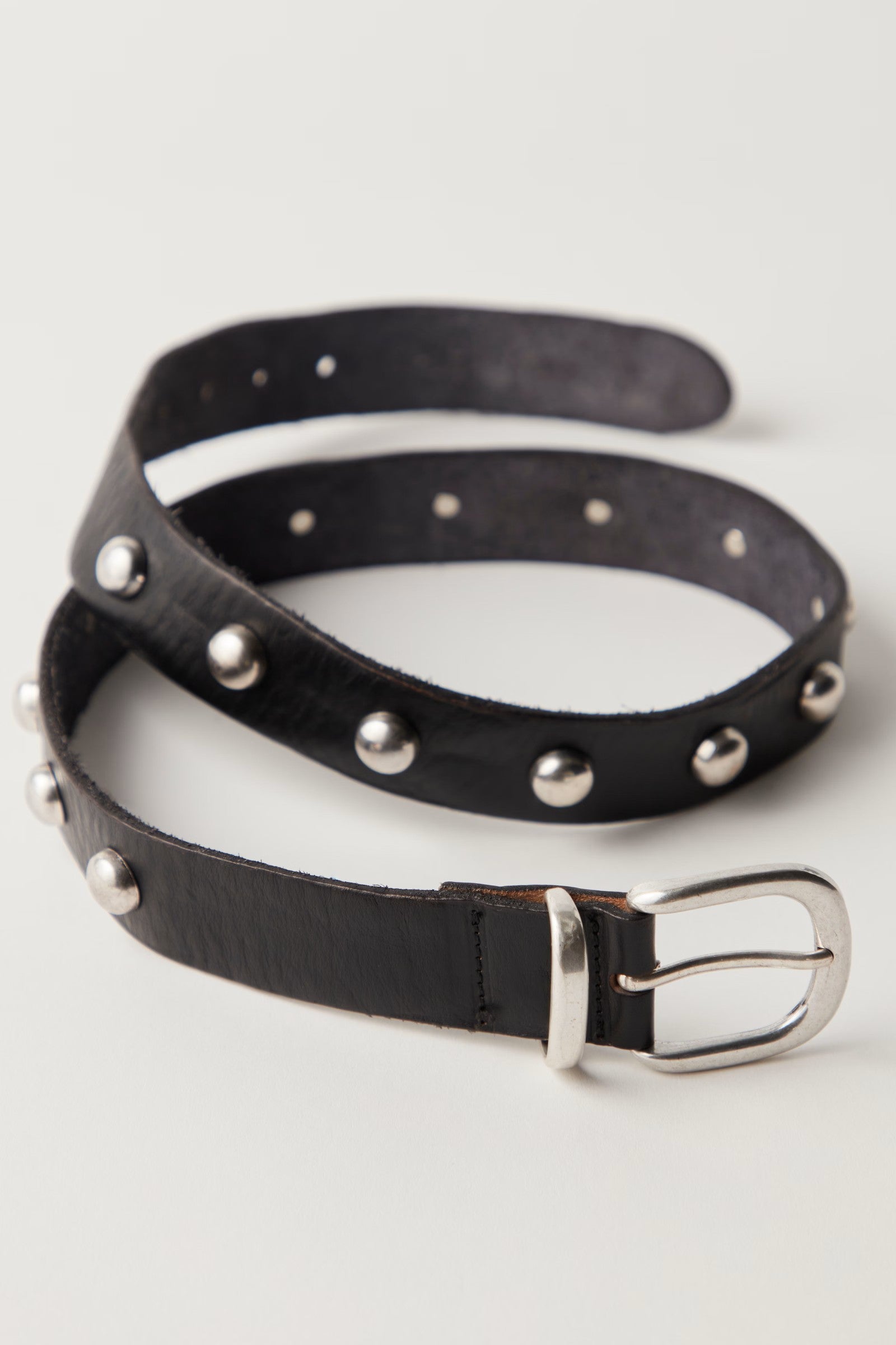 An elevated take on a classic silhouette, this belt features a soft leather fabrication and chunky studded detailing with an adjustable buckle closure.