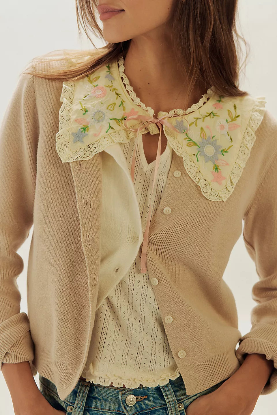 Femme and a little bit folksy, this short-sleeve tee features floral embroidery and frilly lace detailing with a ribbon at the collar.